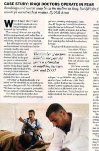 Weakened by sanctions, Iraq’s health care system was brought to its knees by the conflict that followed the US-led invasion. Recent security gains have allowed some hospitals to recover – but the doctors working in them still fear for their lives.